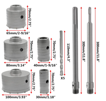 混凝土孔锯套装有螺纹9件(30mm、40mm、65mm、80mm、100mm)不带电无插