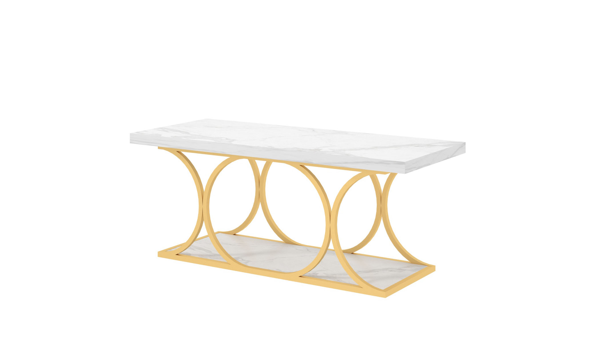 金属咖啡桌 开放式收纳 铁木 双层 长方形 39-42inch 大理石纹 不带电 S001 全站点可售