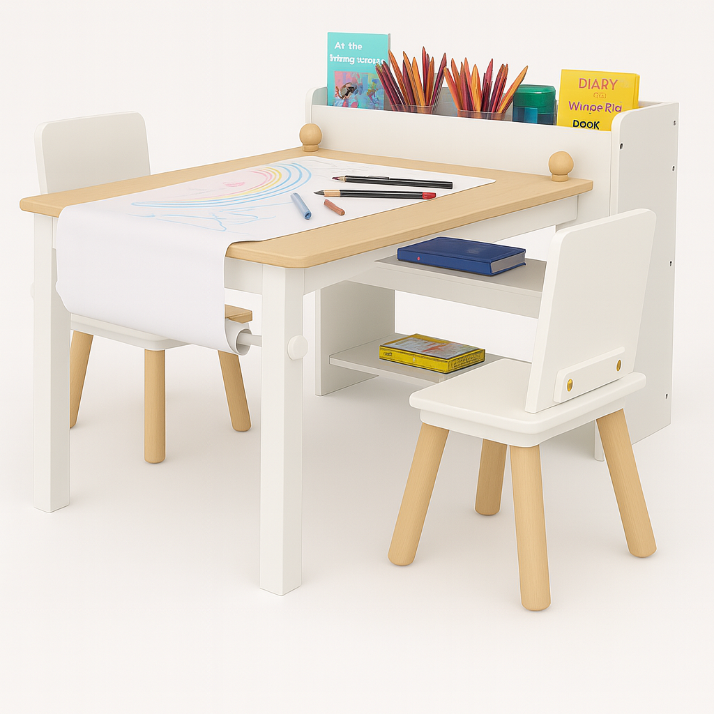 带储物儿童桌椅 一桌二椅一柜 板材质 白色 不带电 S001 全站点可售