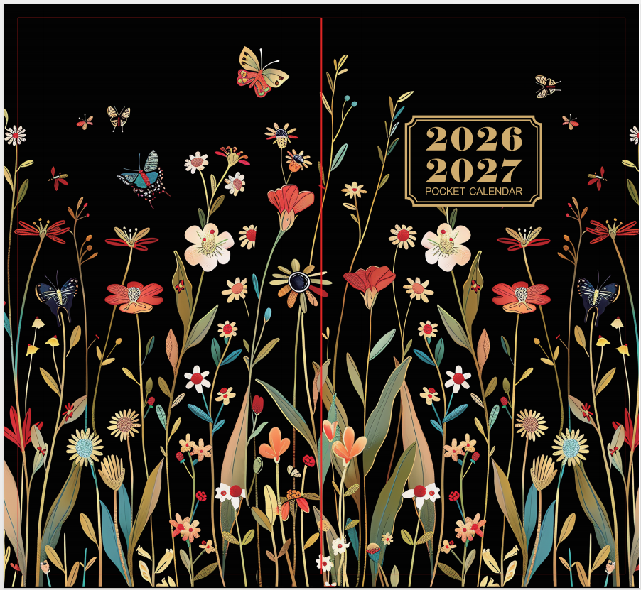 12343GHB-袖珍日历-蝴蝶花卉黑底(26-27)